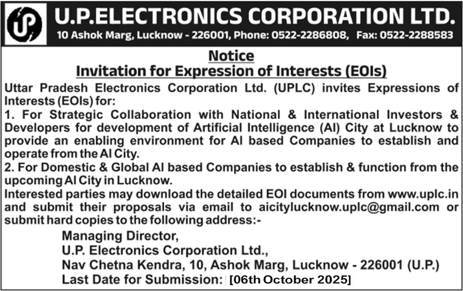 U.P. Electronics Corporation Limited a Company Registered under the Companies Act, 1956 and was incorporated on the 30.03.1974 and is registered with the Registrar of Companies Uttar Pradesh, Kanpur vide certificate of Incorporation no. 3880 of 1974 issued on 30.03.1974. This Corporation is wholly owned undertaking of the Uttar Pradesh Government, wherein all the shares are held by his execellency Governor of Uttar Pradesh and his nominees.